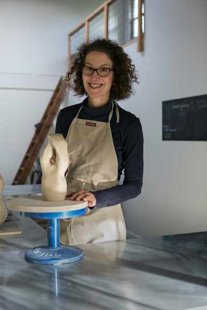 Shelley hand-builds all of her unique sculptures by using the ancient process of rolling individual clay coils. She occasionally melds them with pinch pots and slabs. It is a time intensive process that can take several weeks. This approach allows her to build complex forms without armature. The pieces are then fired in an electric kiln. They are then minimally decorated with underglazes and stains and then fired again. Fingerprints and marks are left as an artistic record.