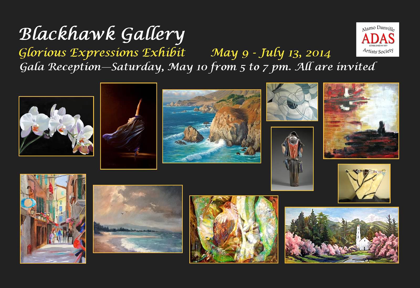 Alamo Danville Artists’ Society will host the opening of Blackhawk Gallery’s Exhibit ‘Glorious Expressions’. This exhibit features 2 guest artists and 40 member artists. Artwork by guest artists include lacquer wares by Jesse Nguyen and ceramic figures by Virginia Rigney. Member artists’ work include oil, acrylic, watercolor, pastel, photography, sculpture, ceramic, glass, fiber art and jewelry.