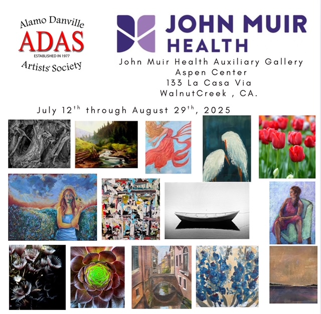 The Alamo Danville Artists’ Society Members have been invited to exhibit at the John Muir Health Gallery at the Aspen Surgery Center in Walnut Creek.